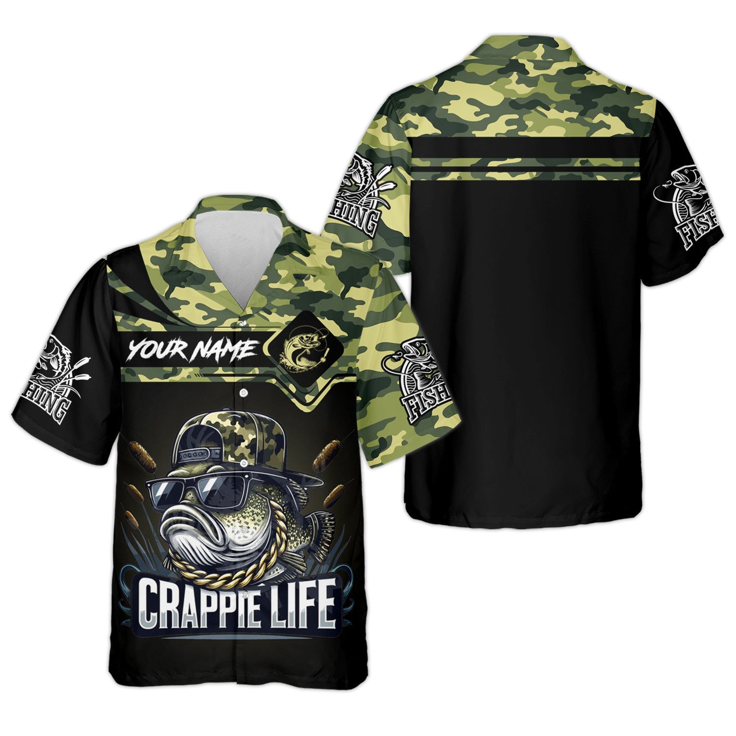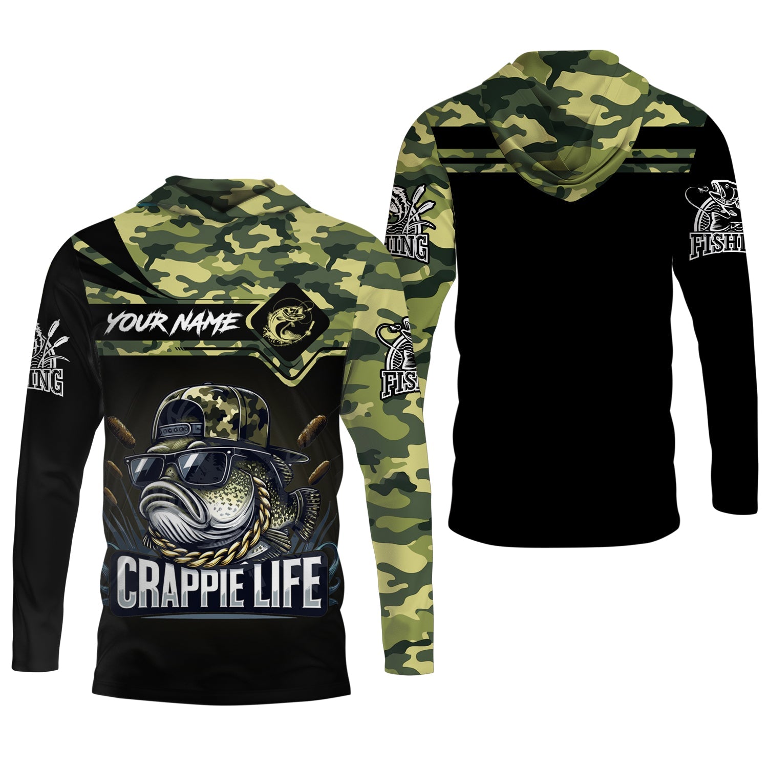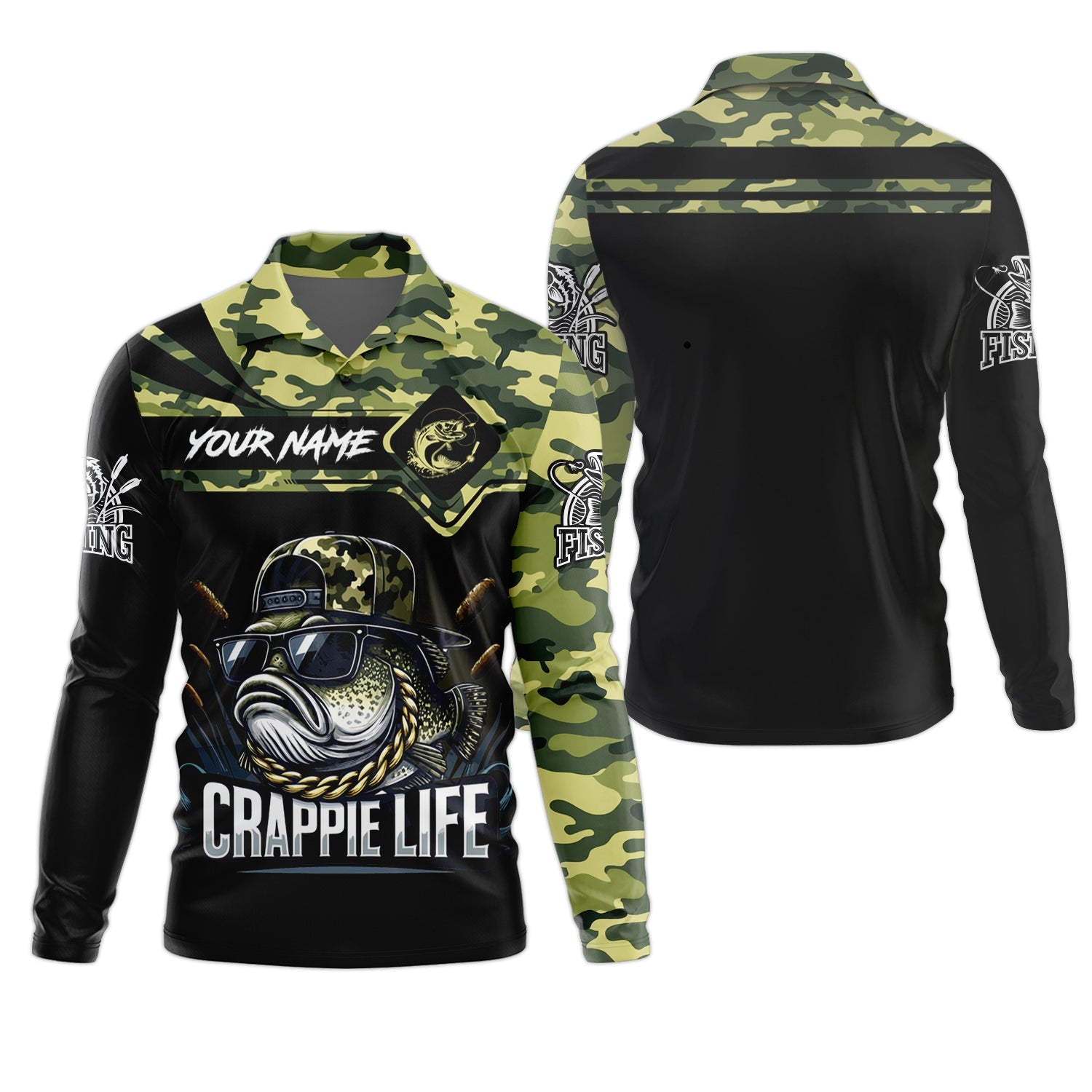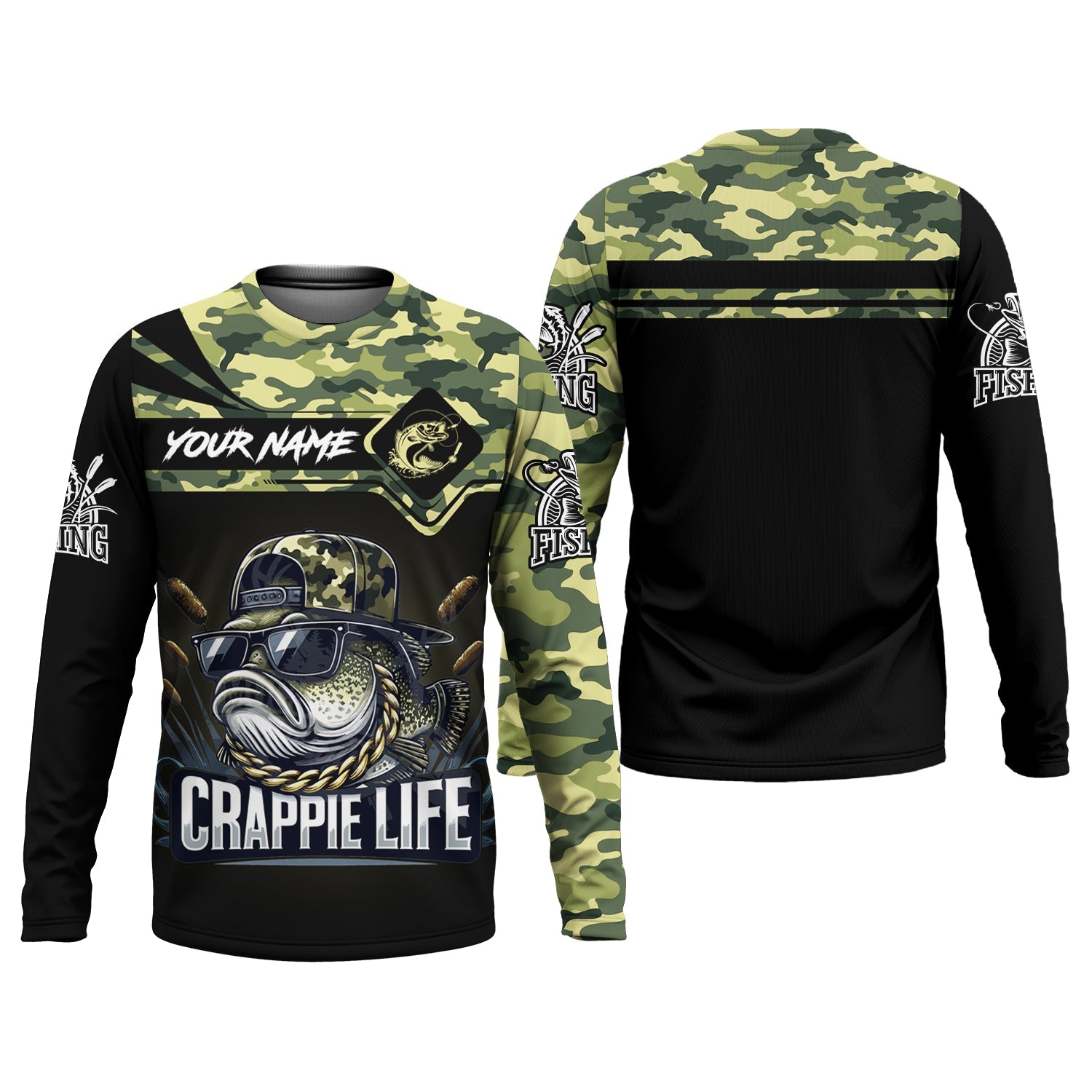 Crappie Life Camo Fishing Shirt, Fishing T-Shirts Funny, SPF Long Sleeve Shirts, Men Long Sleeve Shirt