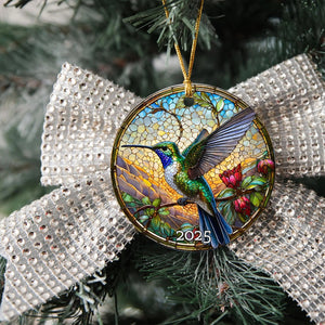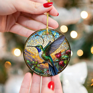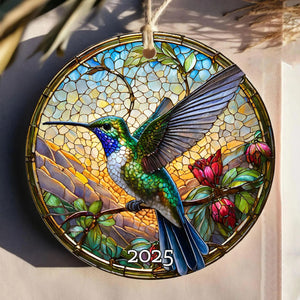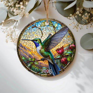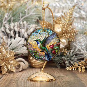 Humming Bird Flowers Christmas Ornament, Stained Glass Ornament, Christmas Decor, Christmas Gifts