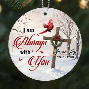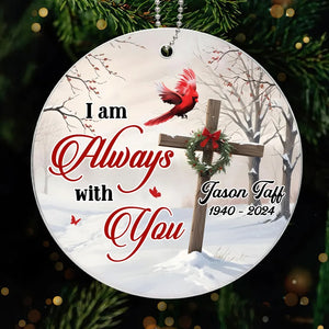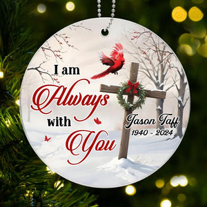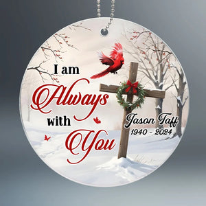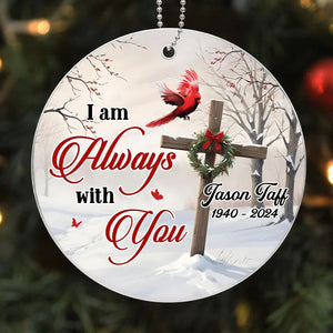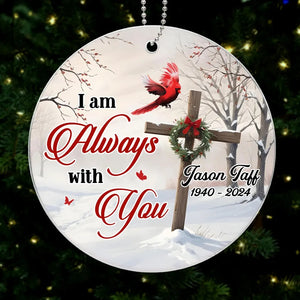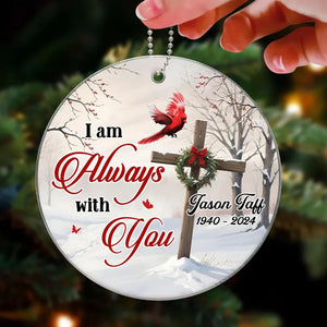 I Am Always With You Personalized Cardinal Cross Memorial Christmas Acrylic Ornament, Sympathy Gift For Lost Loved Ones