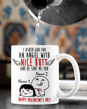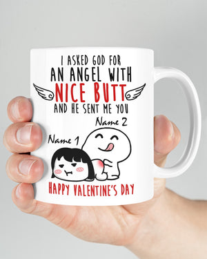 I Asked God Custom Funny Couple Mugs, Valentine Coffee Mug, Gift For Couple