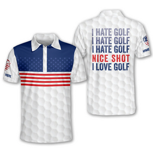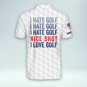 I Hate Golf Nice Short I Love Golf USA Flag Custom Golf Polo Shirts, Golf Gift For Men, Golfing Apparel