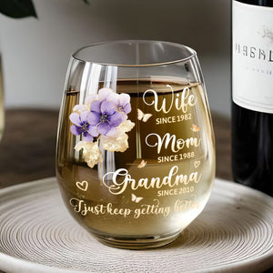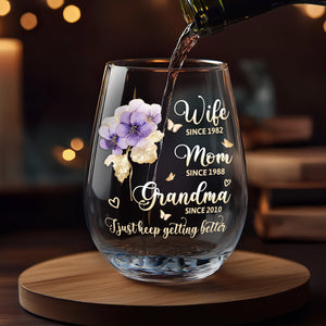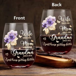 I Just Keep Getting Better Personalized Stemless Wine Glass, Mother's Day Gift