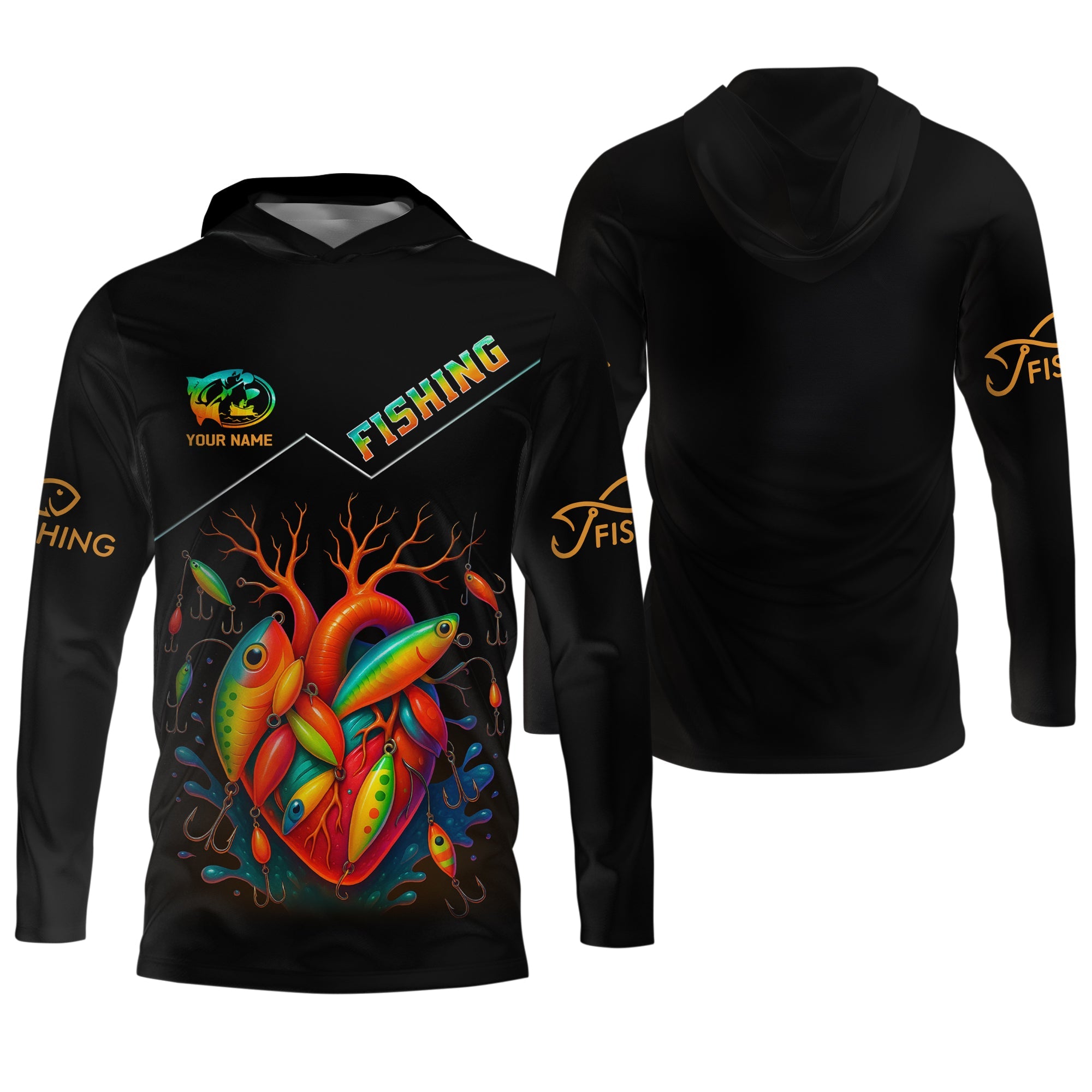 Colorful Fishing Lure UV Shirts For Men, Breathable Long Sleeve Shirt, Hooded Sun Shirt, Mens Casual Shirts