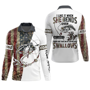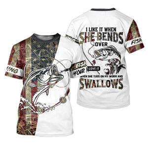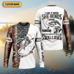I Love It When She Bends Over SPF Shirt, American Flag Fish Shirt, Fishing UPF Shirts, Funny Fishing Shirts