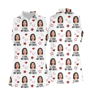 I Love My Husband Custom Face White Golf Shirt, Fun Women's Golf Shirts, Valentines Golf Gift, Ladies Golf Shirts
