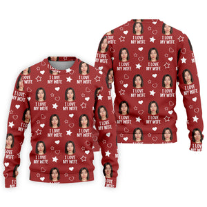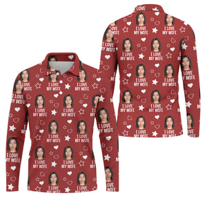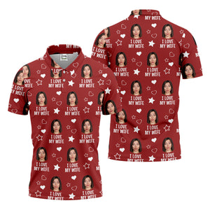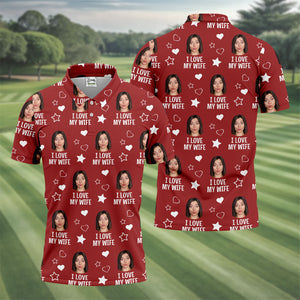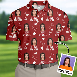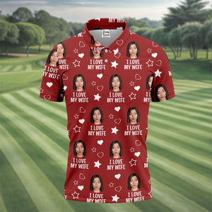 I Love My Wife Custom Face Red Golf Shirt, Fun Golf Shirts For Men, Valentines Golf Gift, Polo Shirts For Men