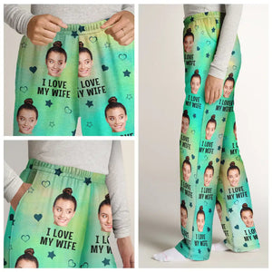 I Love My Wife Custom Photo Funny Pajama Pants, Christmas Gift