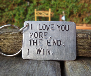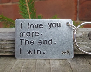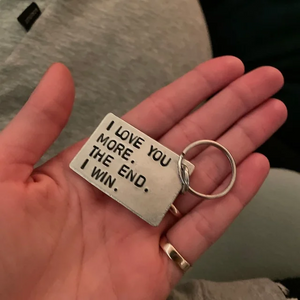 The "I Love You More The End I Win" Keychain is a funny yet heartwarming gift that will make your partner smile while showing them how much you care. Whether it's for a special occasion or just to brighten their day, this keychain is sure to be a cherished keepsake.