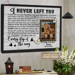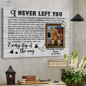 I Never Left You Personalized Photo Canvas Wall Art, Memorial Gifts For Cat Lovers, Cat Loss Gift, Gift For Pet Lovers