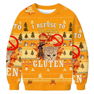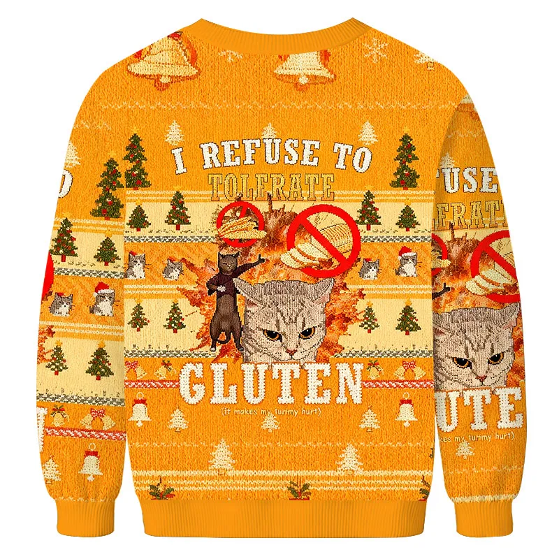 I Refuse to Tolerate Gluten Angry Cats Meme Funny Ugly Sweater, Ugly Xmas Sweater, Christmas Ugly Sweatshirt
