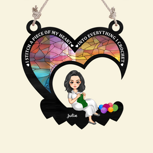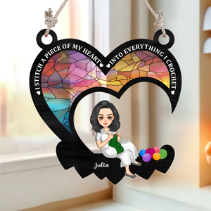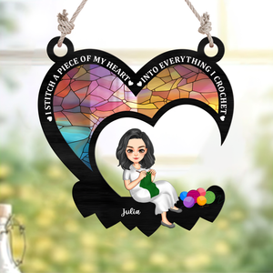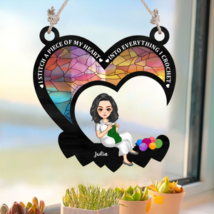 I Stitch A Piece Of My Heart Personalized Window Hanging Suncatcher, Craft Room Decor