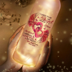 I Used To Be His Angel Now He Is Mine Personalized Memorial Bottle Lamp, Wine Bottle Lights, Gifts For Lost Loved Ones