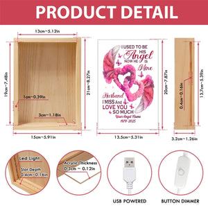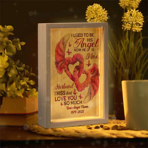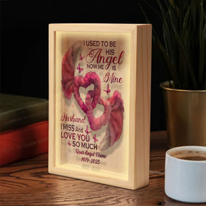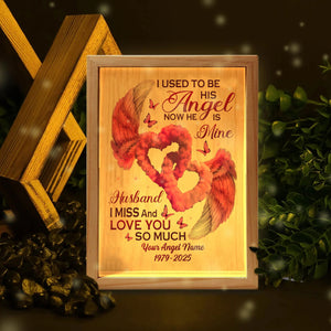 I Used To Be His Angel Now He Is Mine Personalized Memorial Photo Frame Light Box, Gifts For Lost Loved Ones