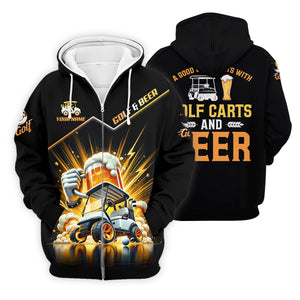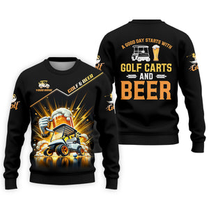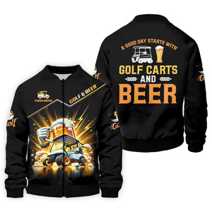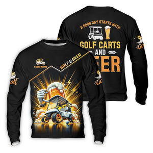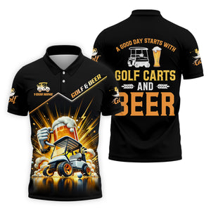 A Good Day Starts With Golf Carts And Beer Custom Men's Golf Polo Shirt, Dad Golf Gift