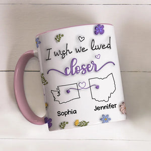 I Wish We Lived Closer 3D Inflated Effect Mug, Long Distance Mug, Best Friend Birthday Gifts