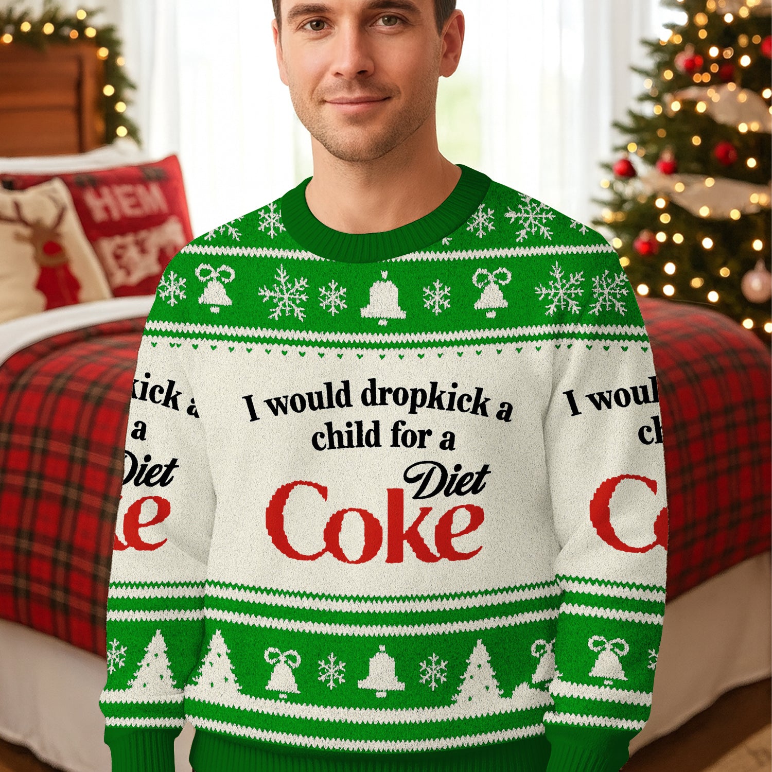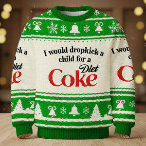 I Would Dropkick A Child For A Diet Coke Green Ugly Sweater, Christmas Ugly Sweatshirt