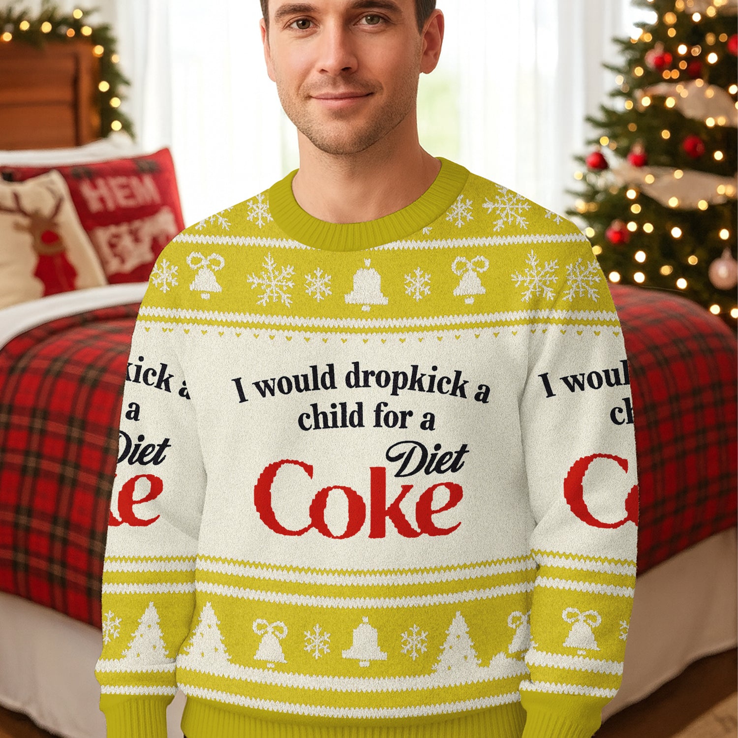 I Would Dropkick A Child For A Diet Coke Yellow Ugly Sweater, Christmas Ugly Sweatshirt