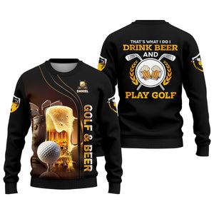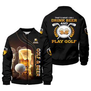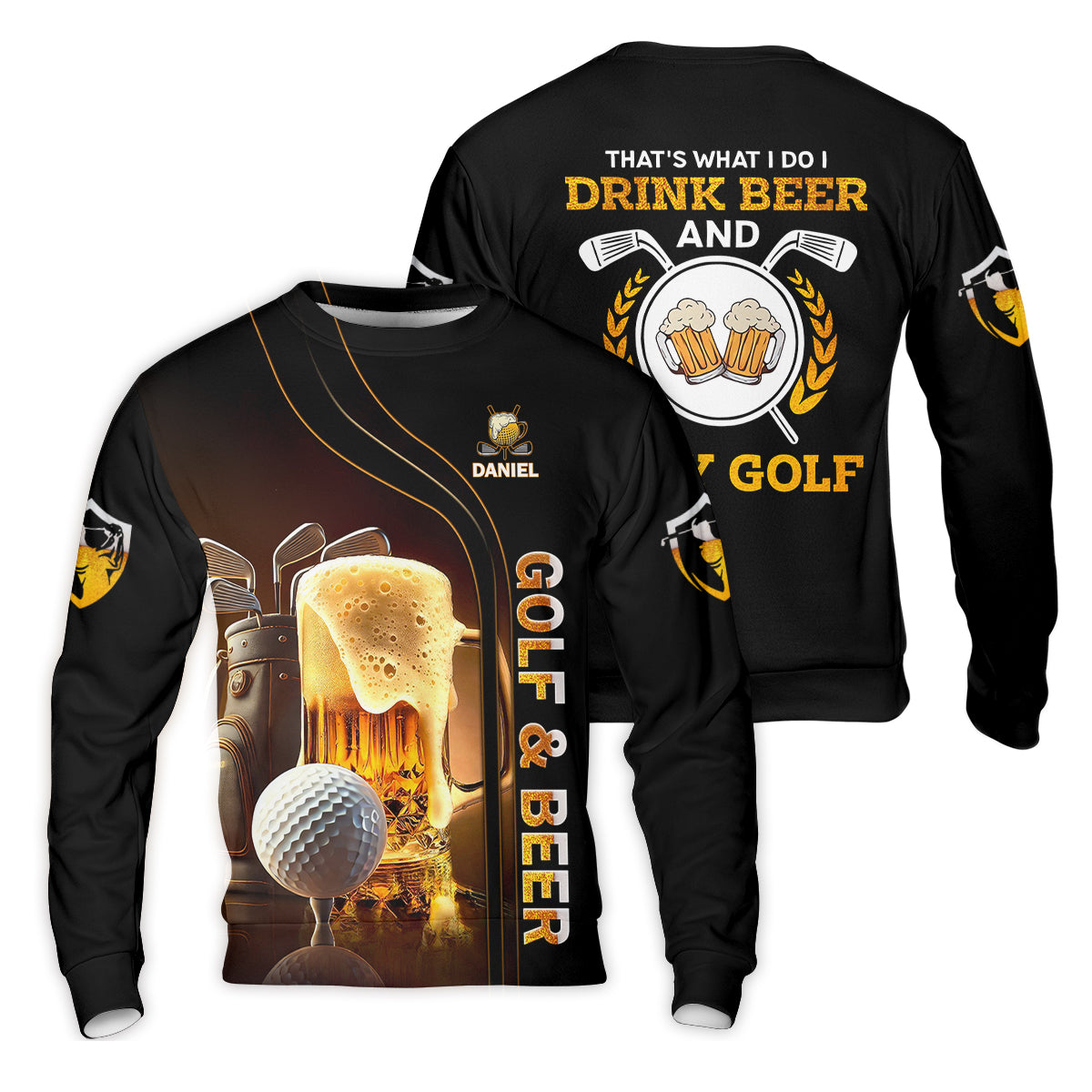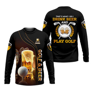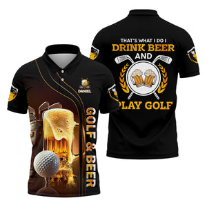 That's What I Do I Drink Beer And Play Golf Custom Men's Golf Polo Shirt, Golf Present For Dad