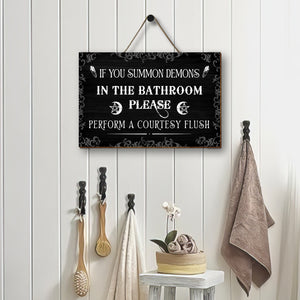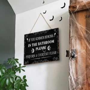If You Summon Demons In The Bathroom Witch Wood Sign, Halloween Home Decor