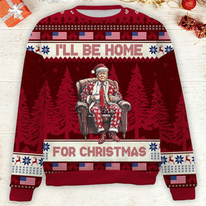 I'll Be Home For Christmas Funny Humorous Trump2024 Christmas Ugly Sweater, Funny Political Shirt