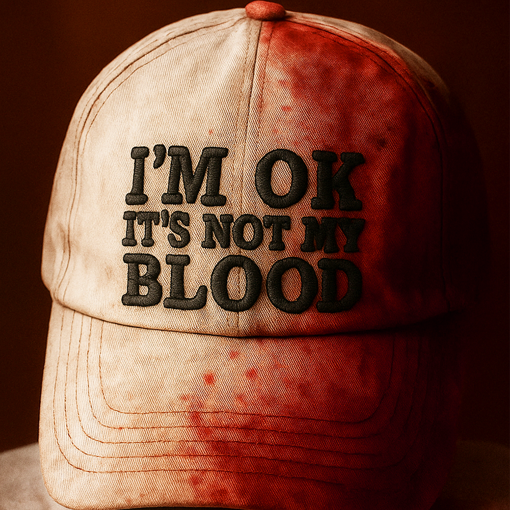 I'm OK, It's Not My Blood Embroidery Cap, Splatter Bloody Classic Cap, Bloody Halloween Baseball Cap, Horror Lover Gift
