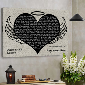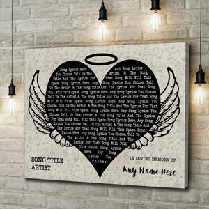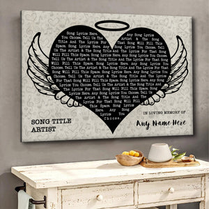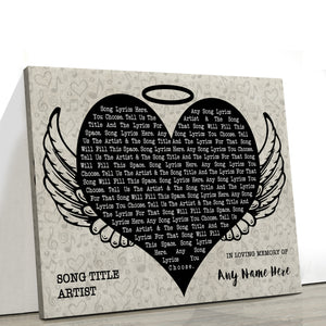 In Loving Memory Personalized Heart Angel Wings Music Wall Art With Song Lyrics, Memorial Gifts
