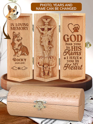 In Loving Memory Personalized Openable Wooden Cylinder Sculpture of Jesus Christ, Gift For Dog Lovers