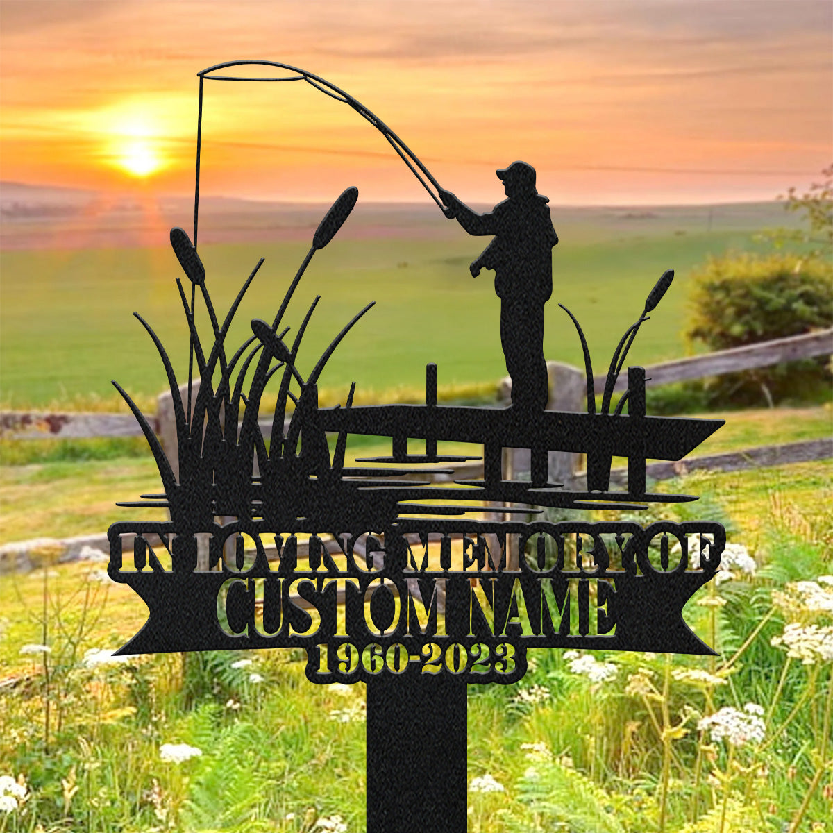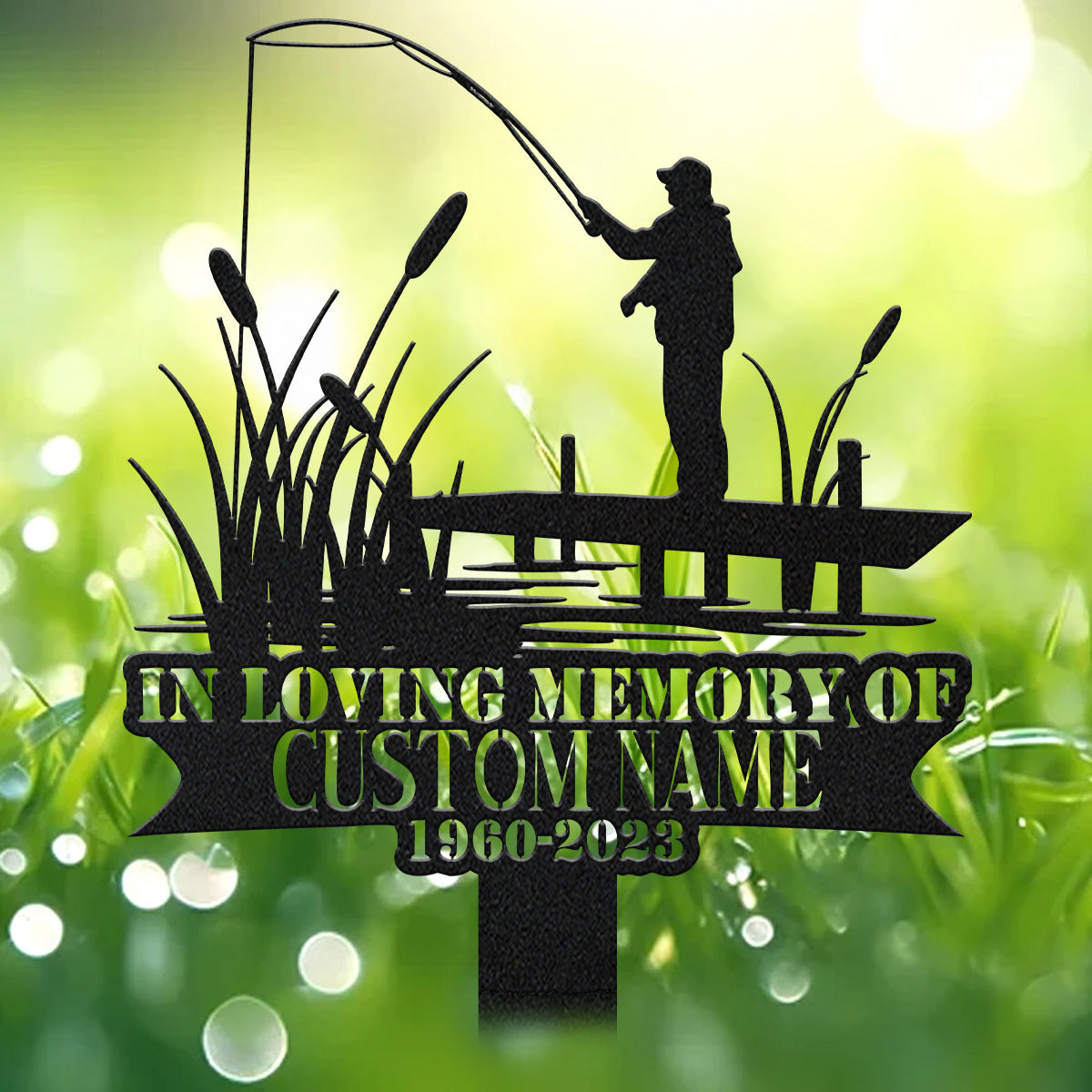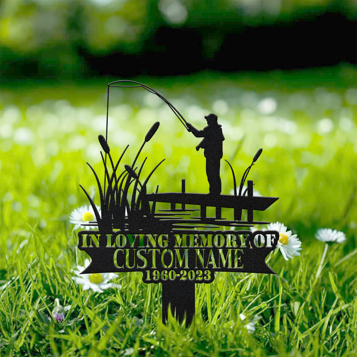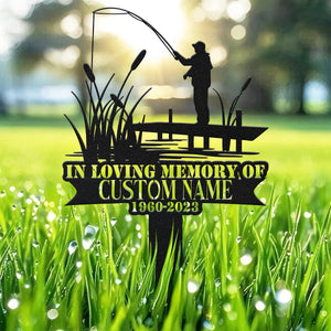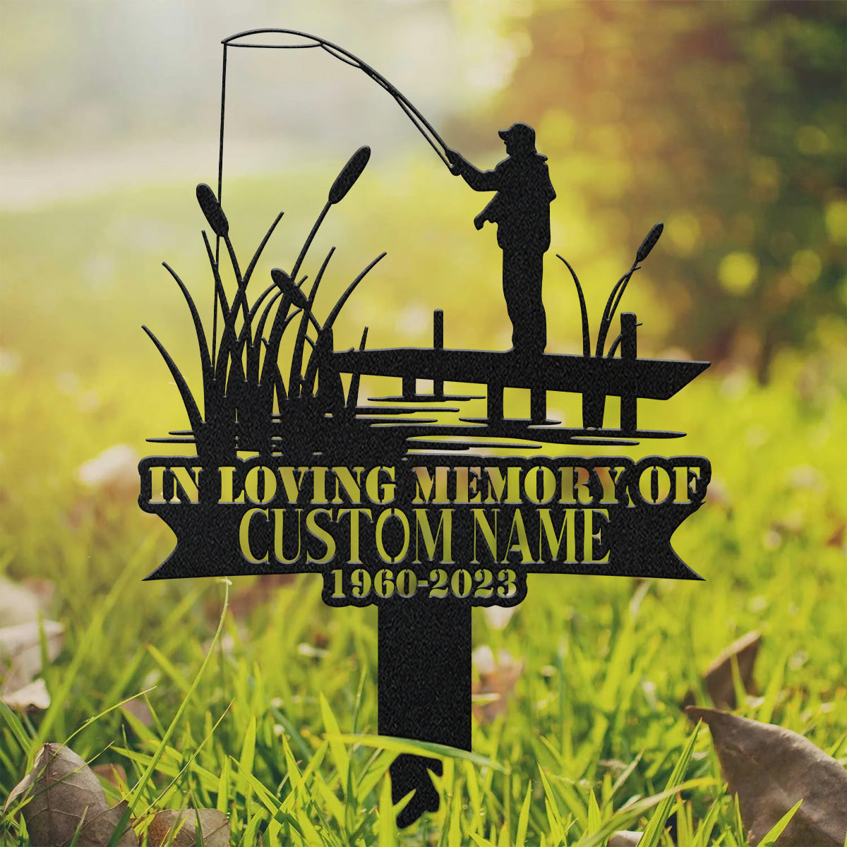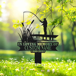 In Loving Memory Sign, Fisherman Memorial, Custom Laser Cut Metal Signs, Remembrance Metal Stake, Memorial Plaque