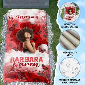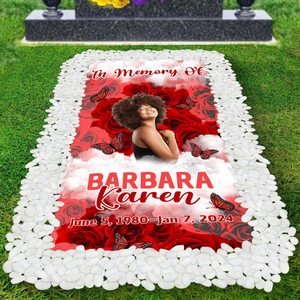 HIGH QUALITY MATERIAL: Made from Heavy Duty material, weather-waterproof and UV resistant material. Durable outdoor use; It can last through all seasons(possibly longer). Our custom memorial grave blankets DO NOT INCLUDE ROCKS/STAKES OR ACCESSORIES.