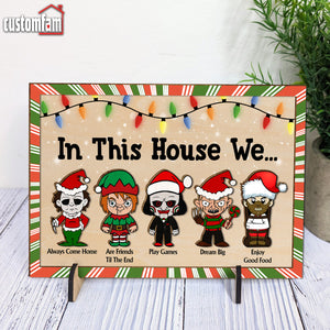 In This House We Christmas Wood Sign, Horror Movie Characters, Christmas Home Decor