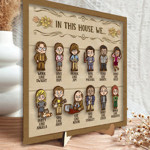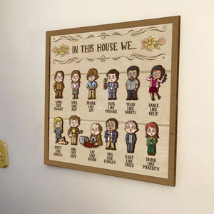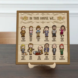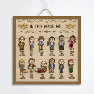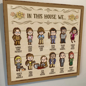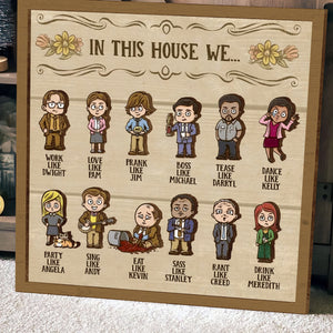 In This House We Funny Characters 2 Layered Wooden Sign, The Office House Rules Plaque