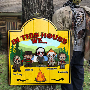 In This House We Horror Camping 2 Layered Wooden Sign, Halloween Camping Decor