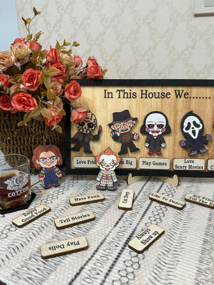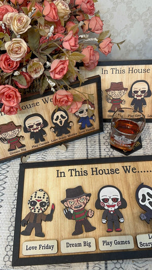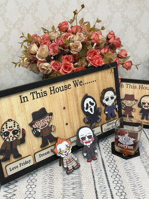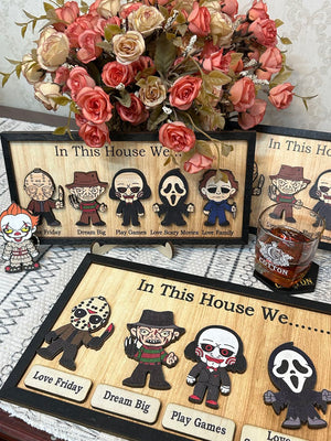 In This House We Horror Halloween Wood Sign Horror Movies Sign With Magnet