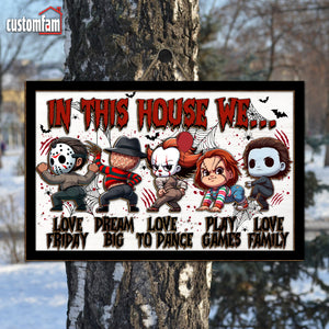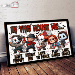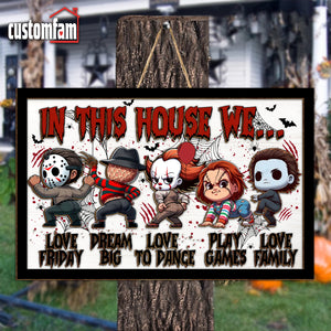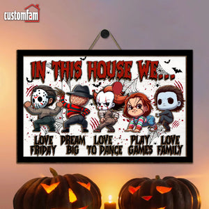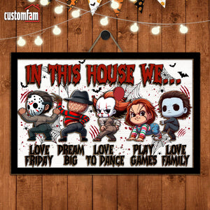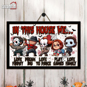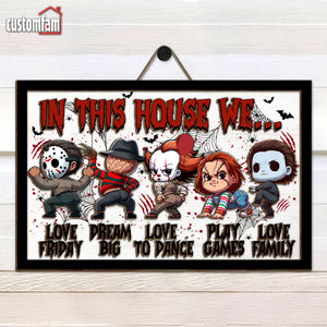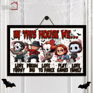 In This House We Horror Movie Characters 2 Layered Frame Wood Sign, Halloween Decor