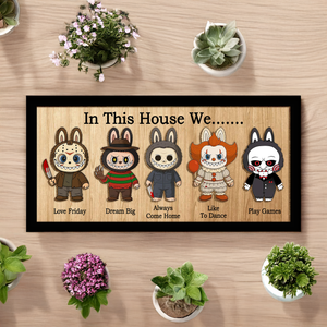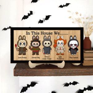 In This House We, Labubu Monster, Labubu Halloween, Horror Movie Characters, Halloween Wood Sign, Halloween Decor