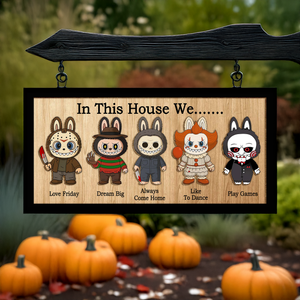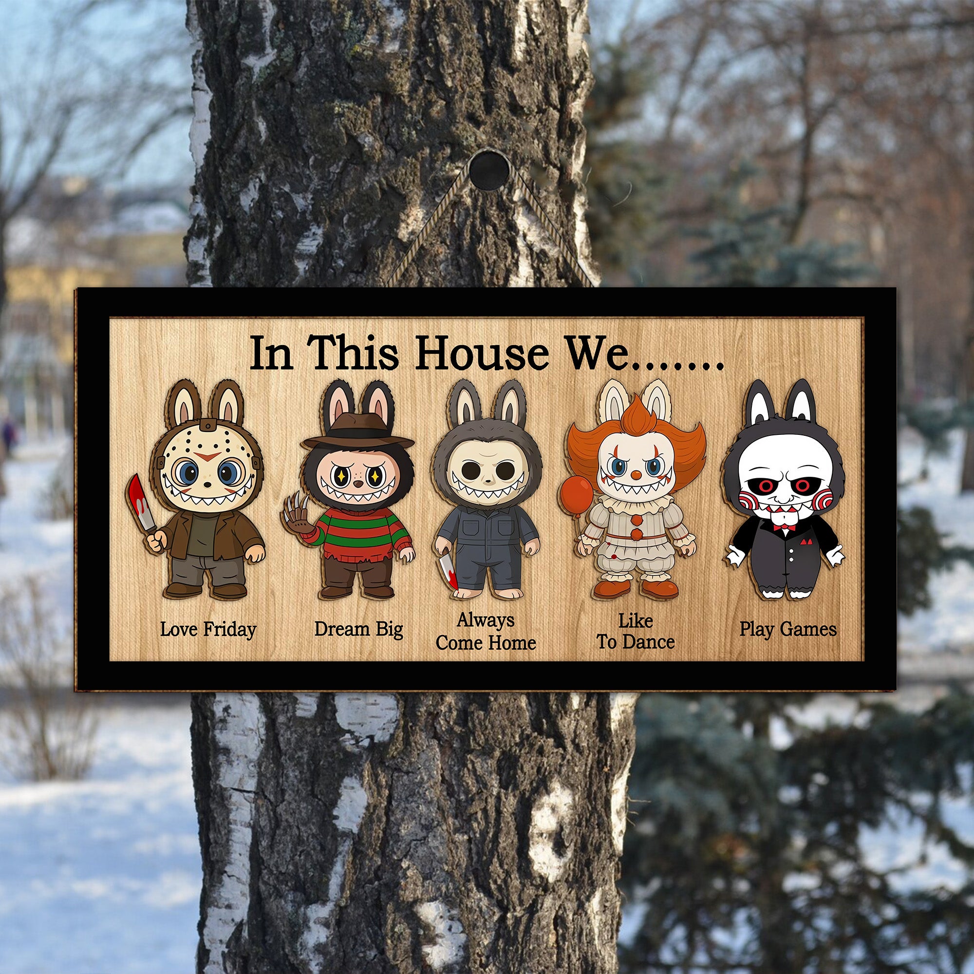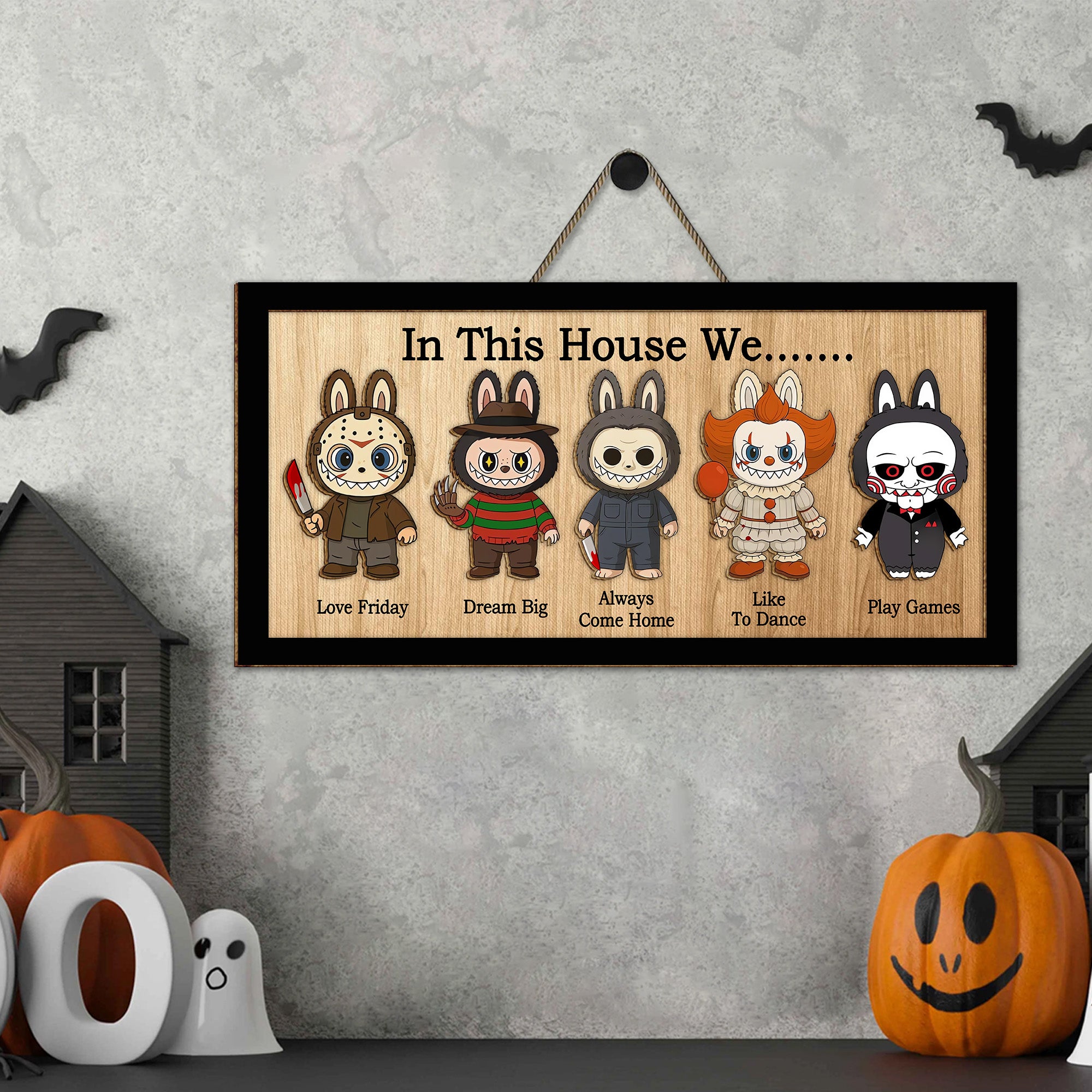 In This House We, Labubu Monster, Horror Movie Characters, Halloween Wood Sign, Halloween Decor, Christmas Gifts