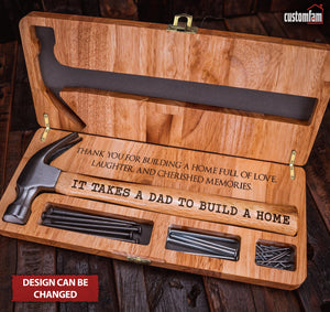 It Takes A Dad To Build A Home Personalised Engraved Hammer, Framing Hammer with Wooden Box and Nails, Gifts For Dad