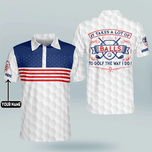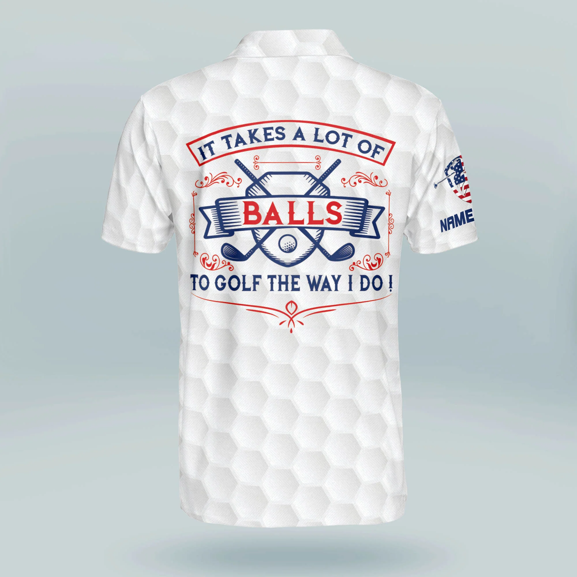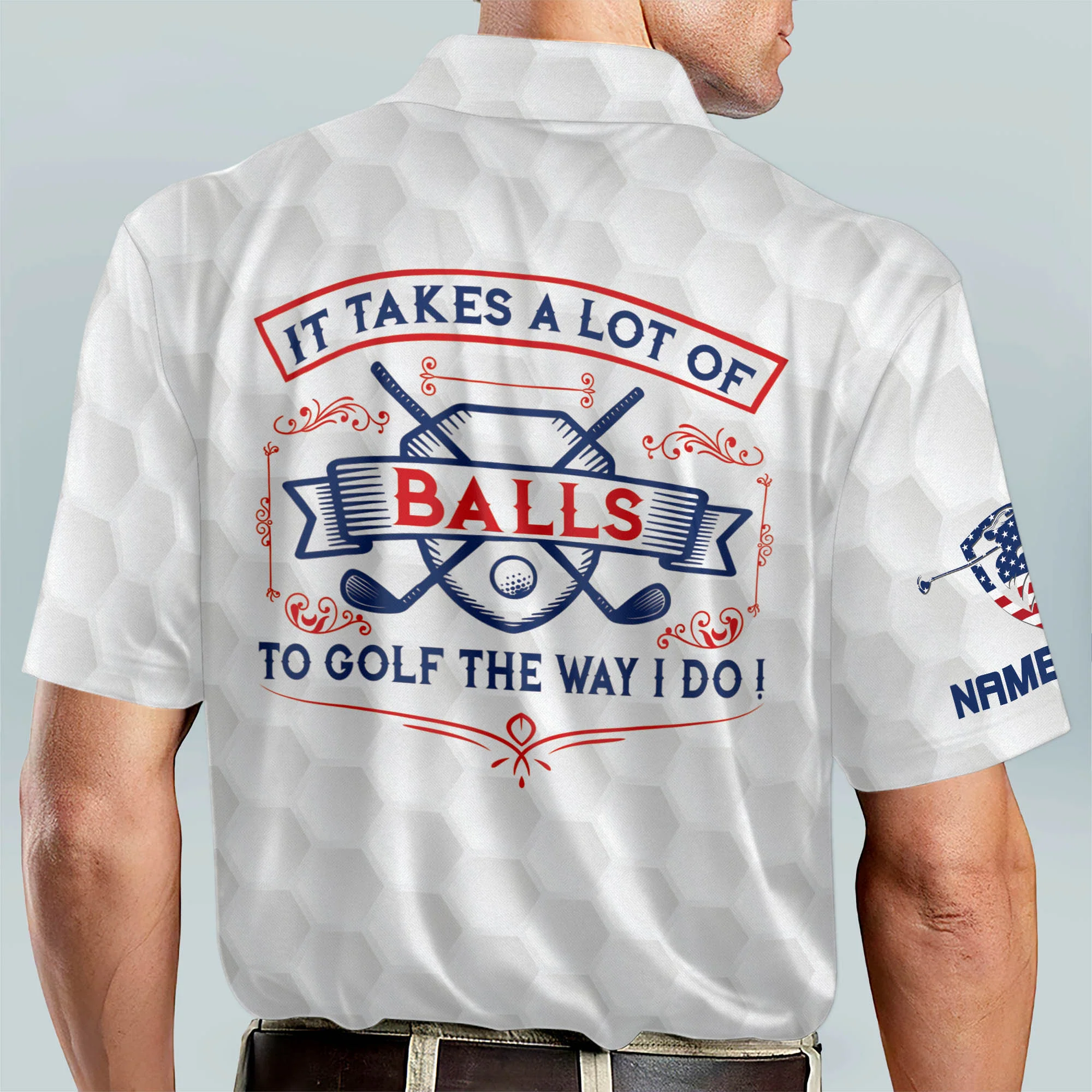 It Takes A Lot of Balls To Golf The Way I Do Patriotic Custom Golf Polo Shirts, Golf Gift For Men, Golfing Apparel