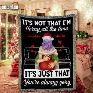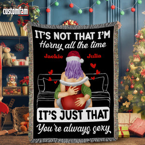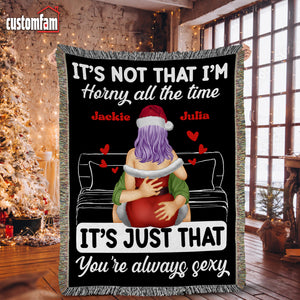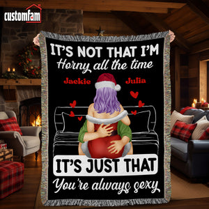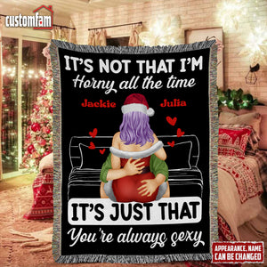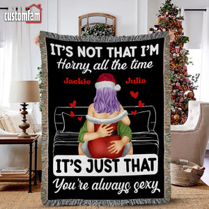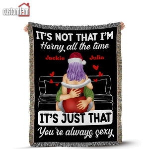 It's Not That I'm H!rny All The Time Personalized Naughty Couple Woven Blanket, Gift For Couples
