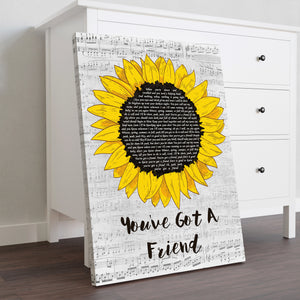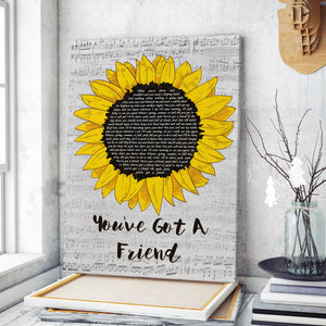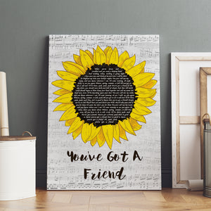 James Taylor You've Got A Friend Grey Script Sunflower Song Lyric Art Print Canvas Print Frames