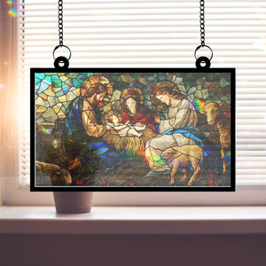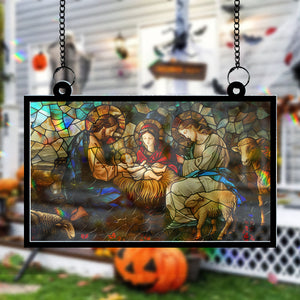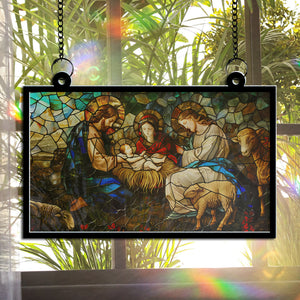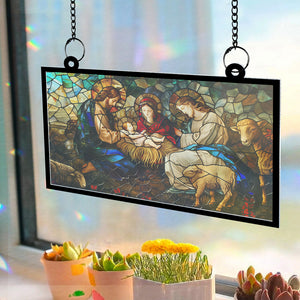 Inspirational Design: Featuring an artistic depiction of the birth of Jesus Christ, this suncatcher portrays the Lamb of God alongside other symbolic elements from the nativity scene. The combination of sacred imagery reflects the true meaning of Christmas and serves as a reminder of the gift of salvation.