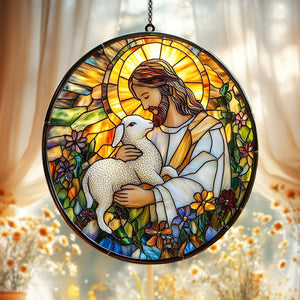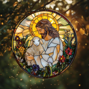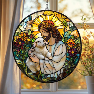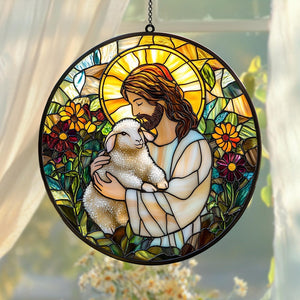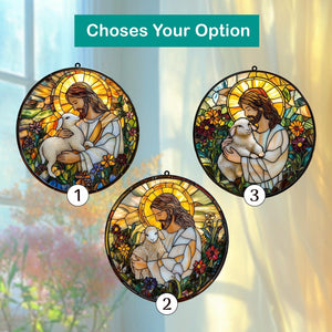 Jesus Hugging Sheep Acrylic Suncatcher Ornament, Christian Decor, Christ Gifts