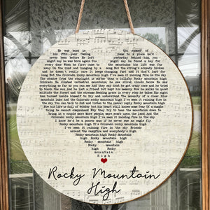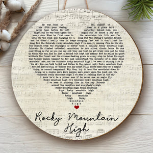 John Denver Rocky Mountain High Script Heart Song Lyric Art Print Round Wood Sign, Wood Signs For Home