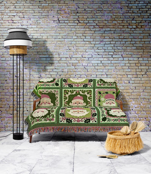 Jolly Santa Patchwork Holiday Blanket Woven, Christmas Home Decor, Christmas Gifts
