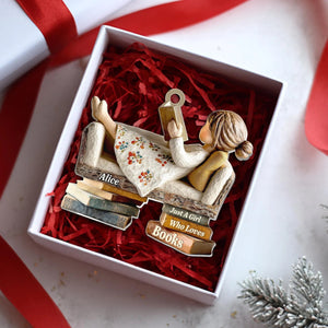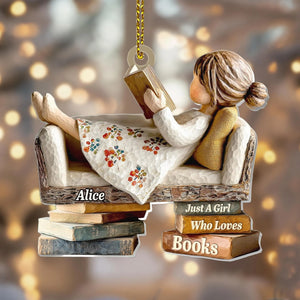 Just A Girl Who Loves Books Acrylic Ornament, Book Lover Ornament, Christmas Book Ornament