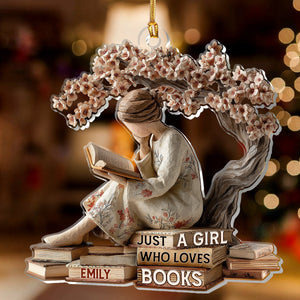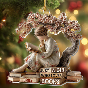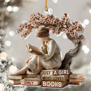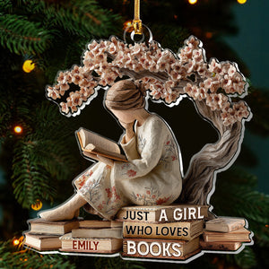 Just A Girl Who Loves Books Acrylic Ornament, Christmas Keychain, Custom Name Gifts For Readers, Xmas Decor