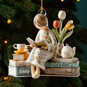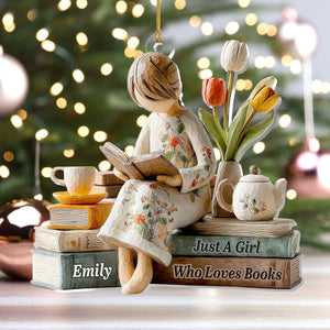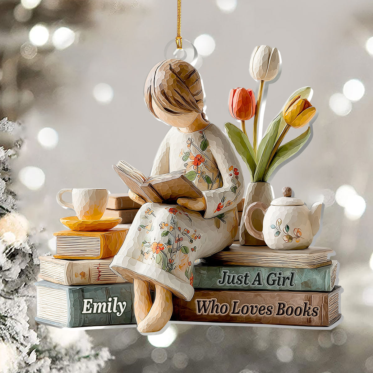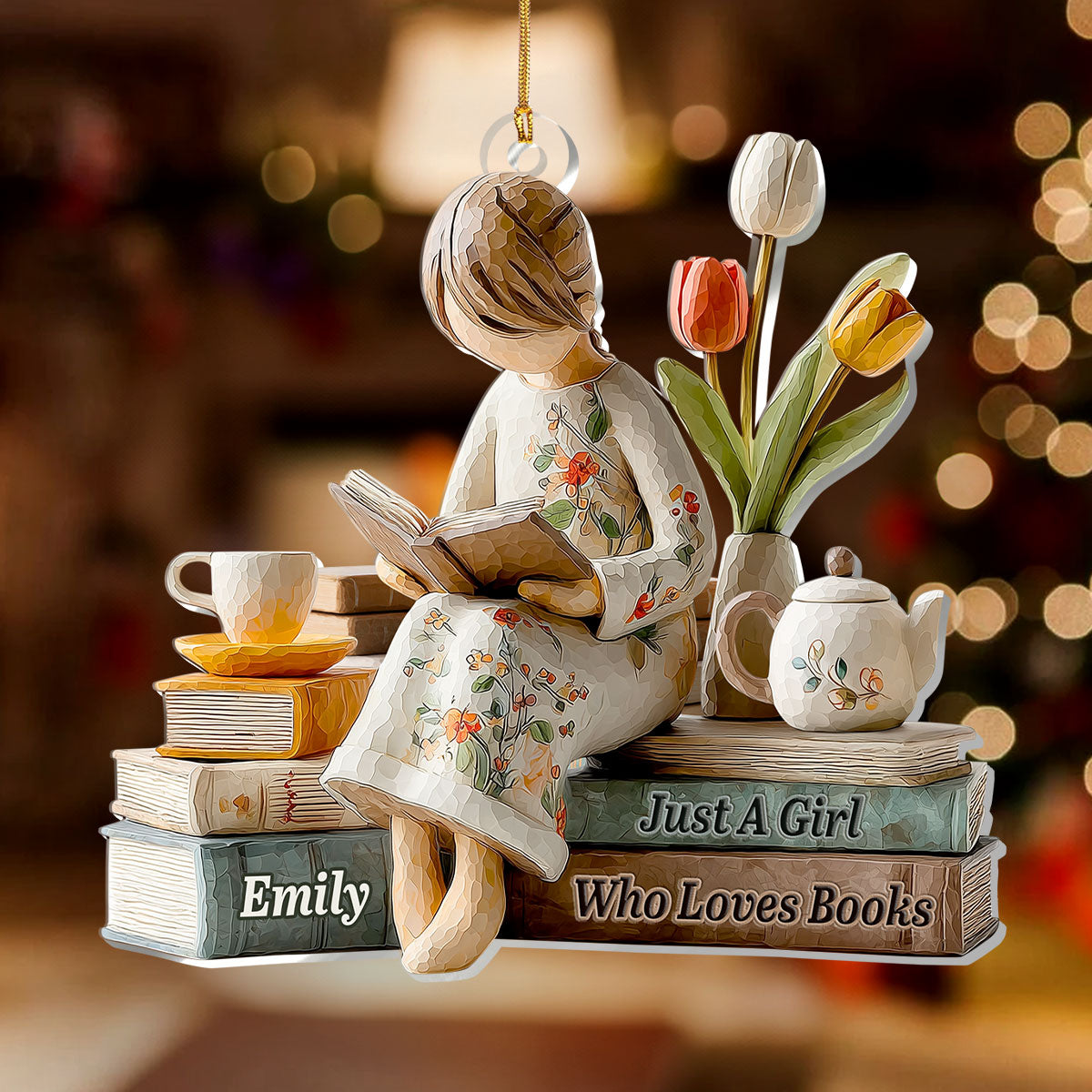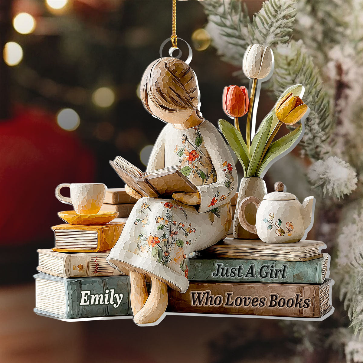 Just A Girl Who Loves Books Christmas Keychain, Custom Name Acrylic Ornament, Xmas Decor, Gifts For Readers