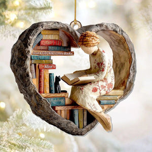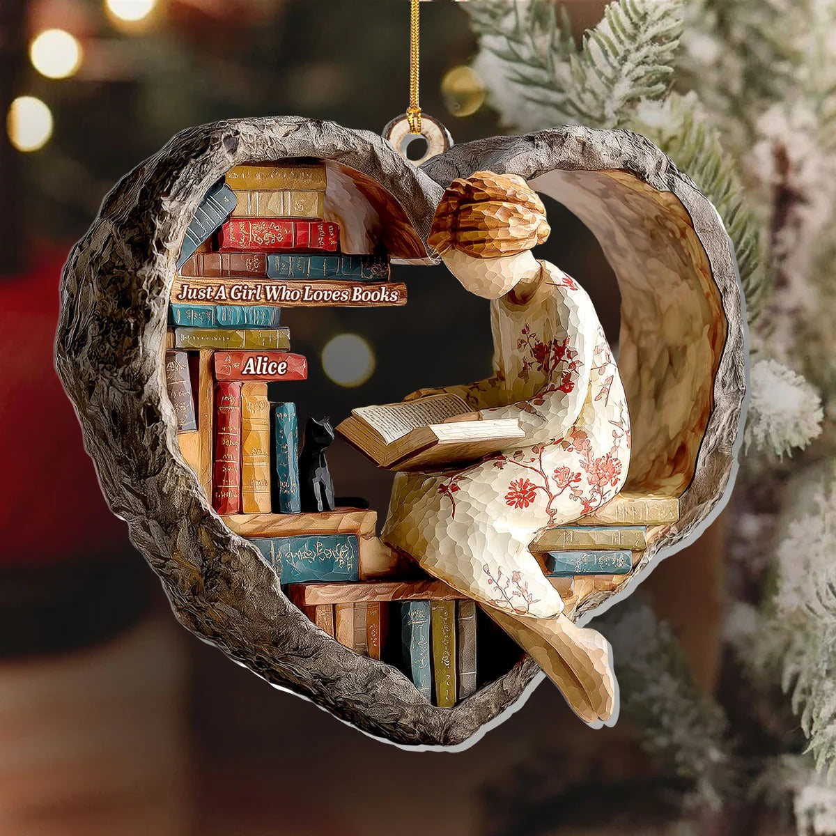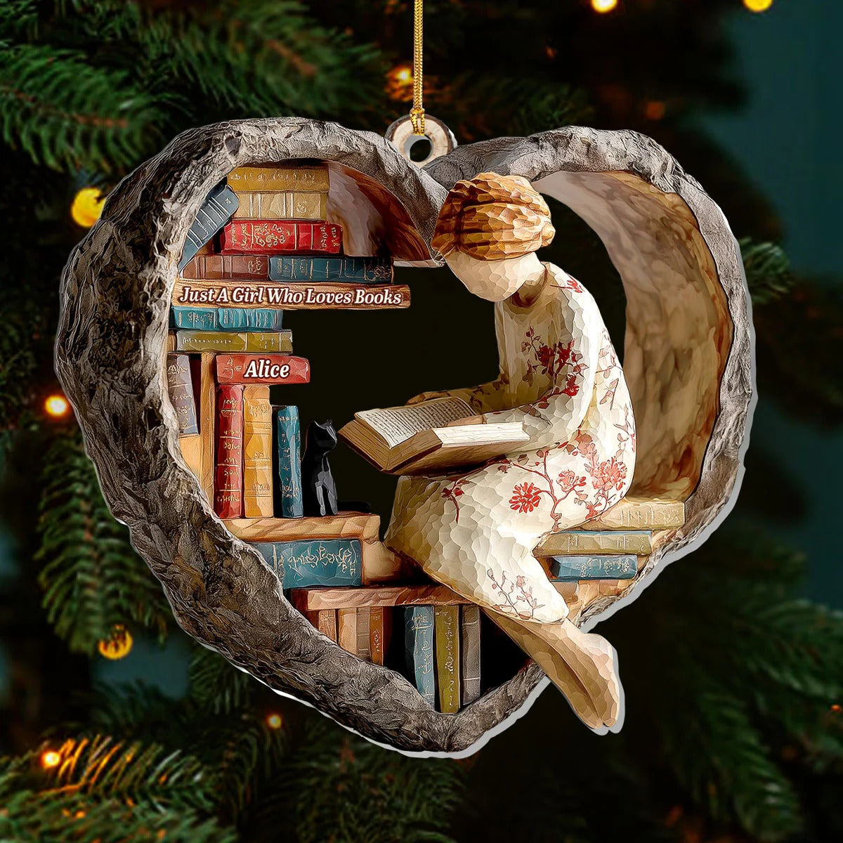 Just A Girl Who Loves Books Custom Name Acrylic Ornament, Christmas Book Ornament, Gifts For Readers