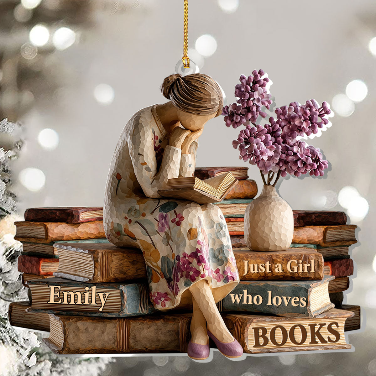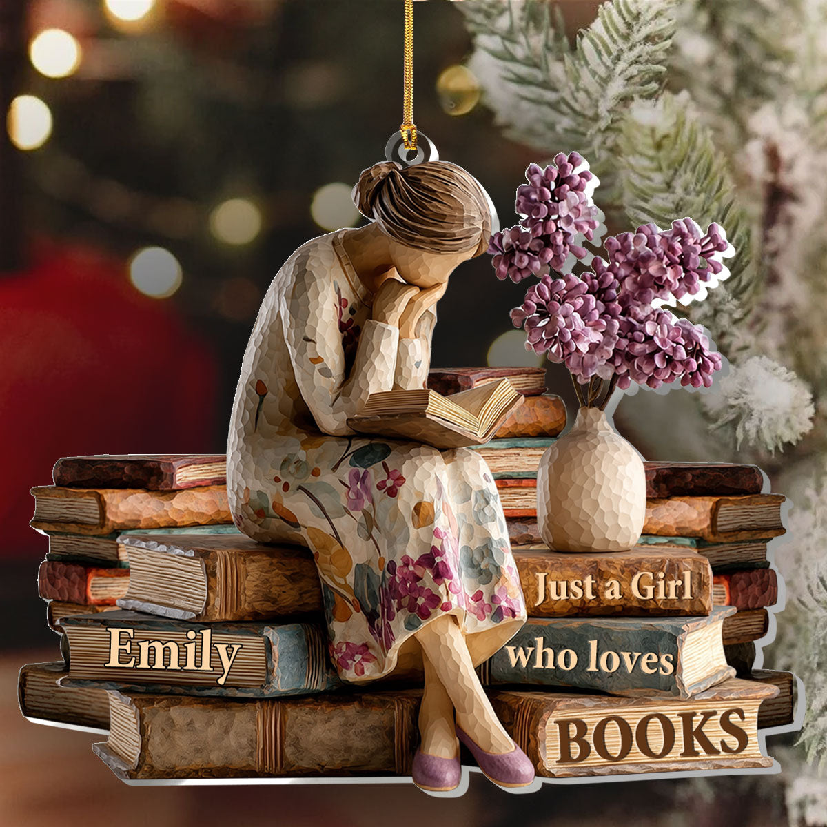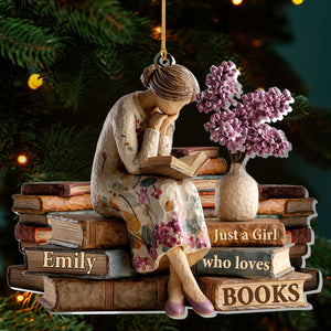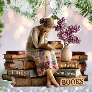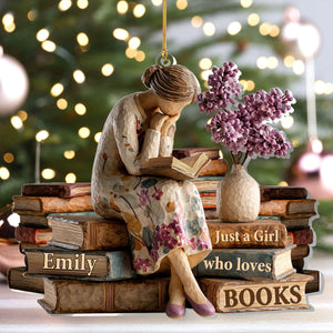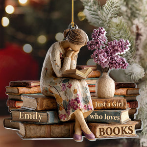 Just A Girl Who Loves Books Custom Name Acrylic Ornament, Christmas Keychain, Gifts For Readers, Xmas Decor