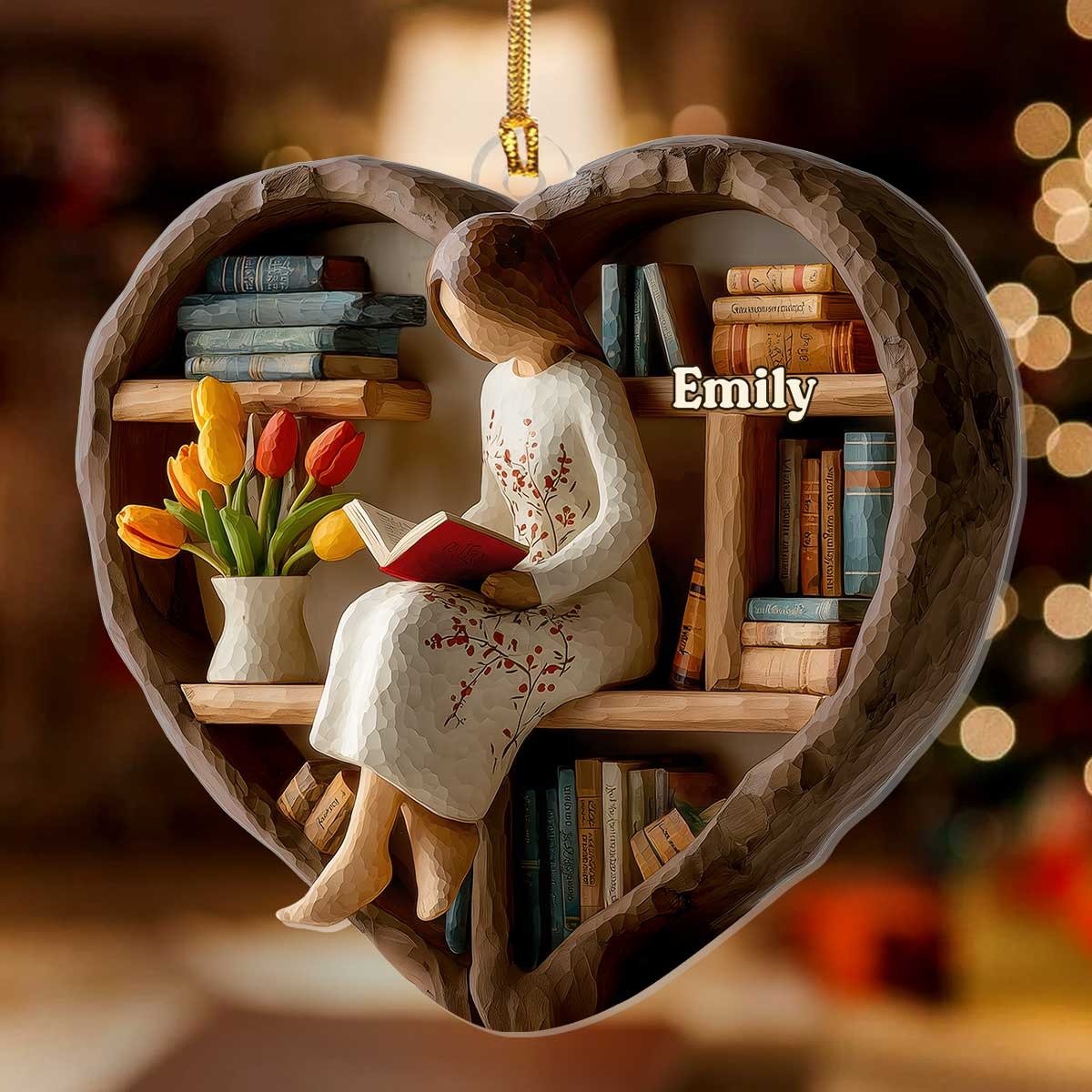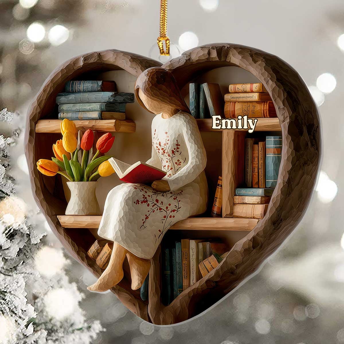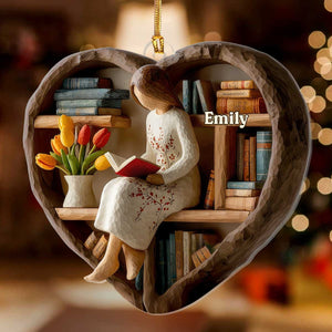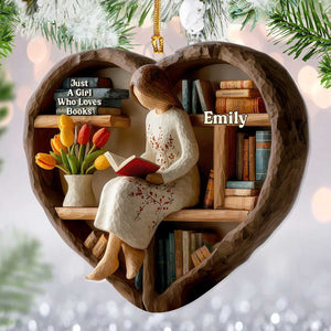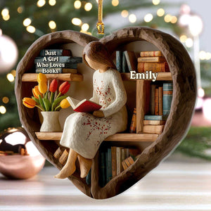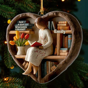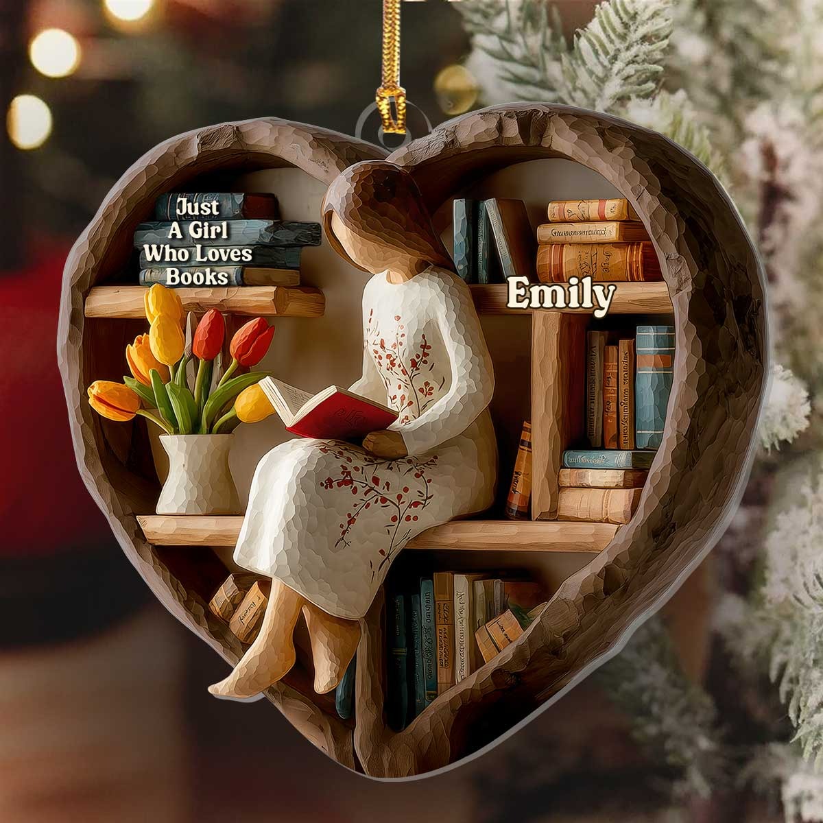 Just A Girl Who Loves Books Custom Name Heart Bookshelf Acrylic Ornament, Christmas Book Ornament, Gifts For Readers